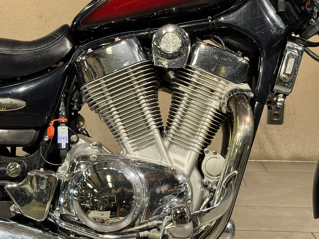 Suzuki VS1400 Intruder från 1995 är en motorcykel med en V-twinmotor som producerar cirka 72 hk, känd för sitt starka vridmoment och karaktäristiska cruisermönster