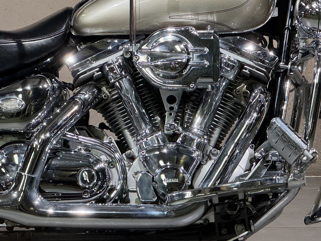 Yamaha XV1600 2002 är en klassisk amerikansk-inspirerad "cruiser" med en 1602 cc V-twin-motor som ger kraftfullt vridmoment för smidig stadskörning och landsväg. Den är känd för sin robusta motor, en femväxlad växellåda med remdrift och bekvämligheter som hydrauliska lyftare som minskar ljud och underhåll